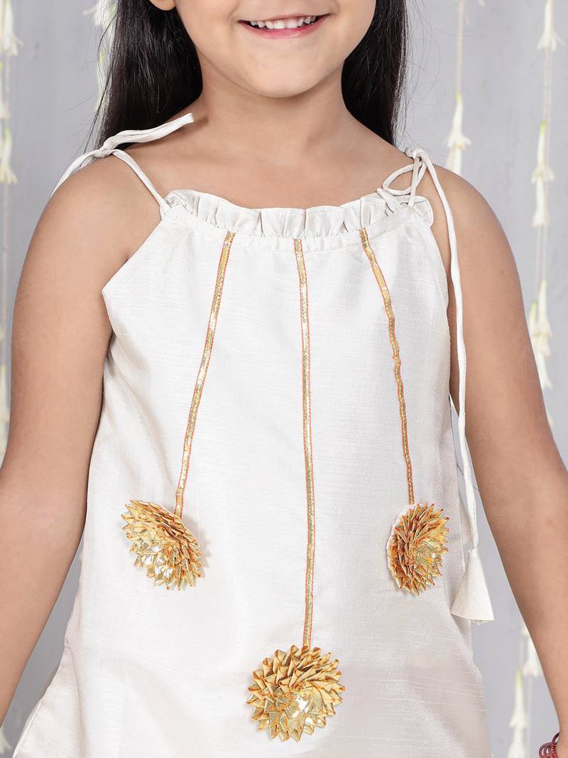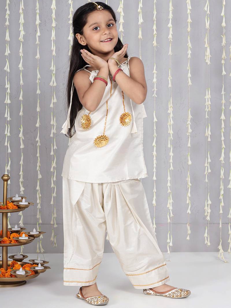 | Product Name | Off White Gotta Flower Patch Silk Blend Kurti With Salwar Set For Girls | |