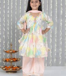 Peach foil print silk kurti palazzo pent with dupatta set for girls