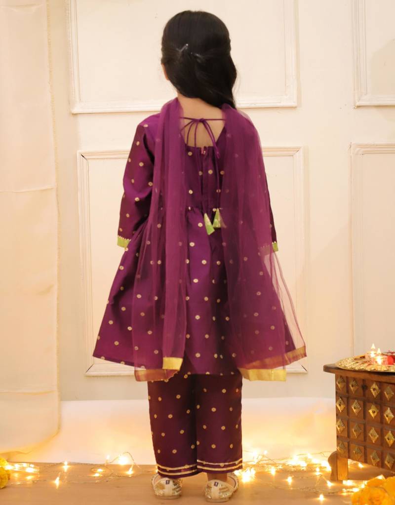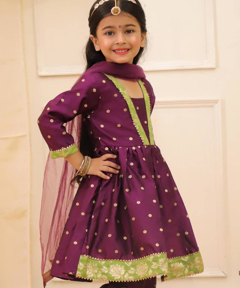 | Product Name | Purple Woven Taffeta Anarkali Pant With Dupatta Set For Girls | |