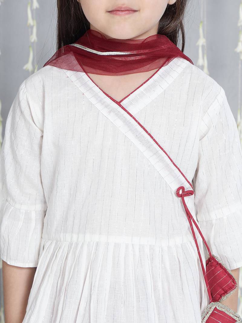 White woven lurex cotton kurti and sharara with dupatta set for girls