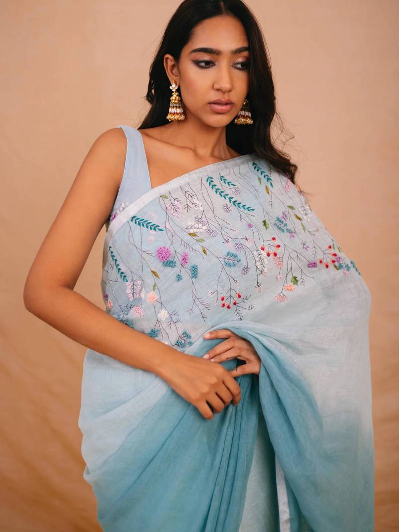 | Product Name | Blue Handloom Linen Saree With Hand Embroidered Work | |