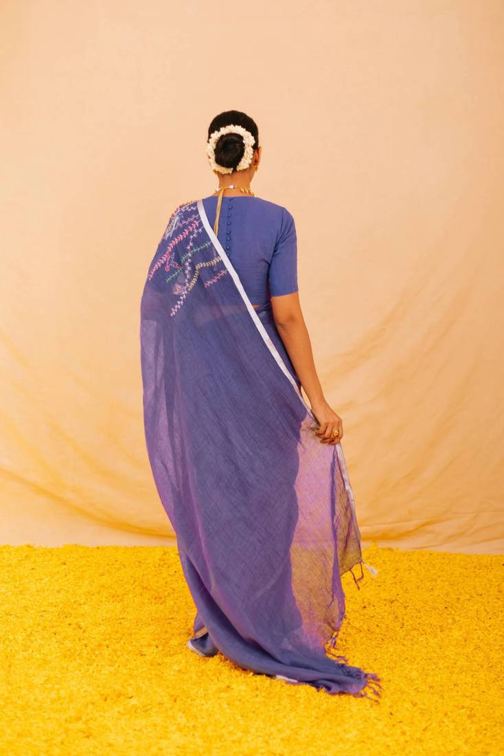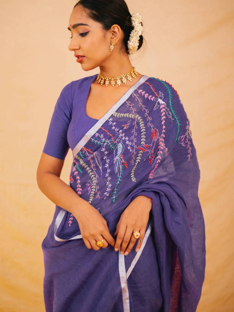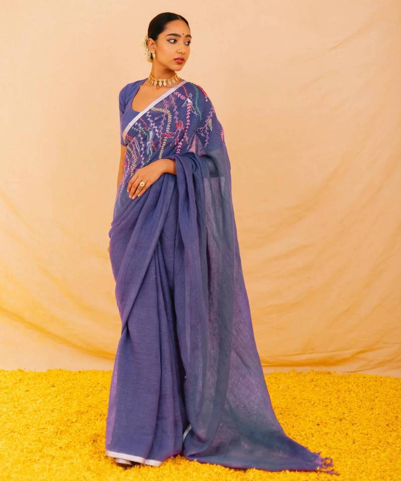 | Product Name | Purple Handloom Linen Saree With Hand Embroidered Work | |