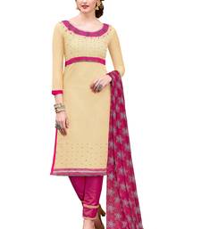 Product Description | Beautifully Designed Unstitched Chanderi Cotton Embroidered Straight Suit Dress Material From Kimisha. It Is Available In Free Size And Can Be Stitched To Suit Your Measurements. It Comes With Matching Nazmeen Dupatta And Unstitched Heavy Cotton Bottom. This Beautiful Dress Would Add Elegance To Your Look. Wear It To Any Occasion With Your Attitude And Earn Complements. It Will Give You Attractive And Stunning Look. |