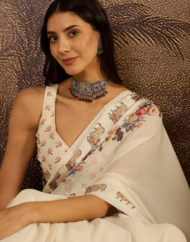 | Product Name | Cream Georgette Printed Saree With Unstitched Blouse Piece | |