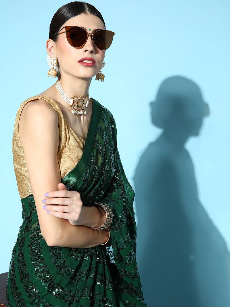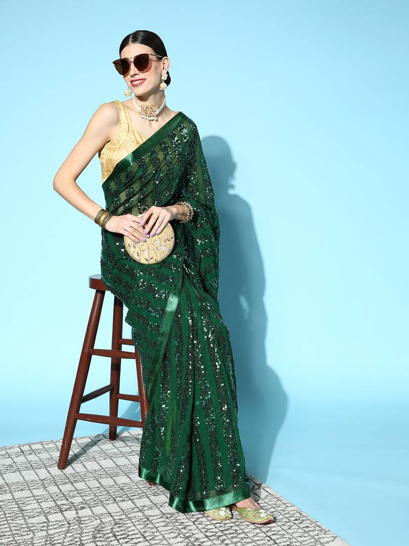 | Product Name | Dark Green Plain Georgette Saree With Blouse | |