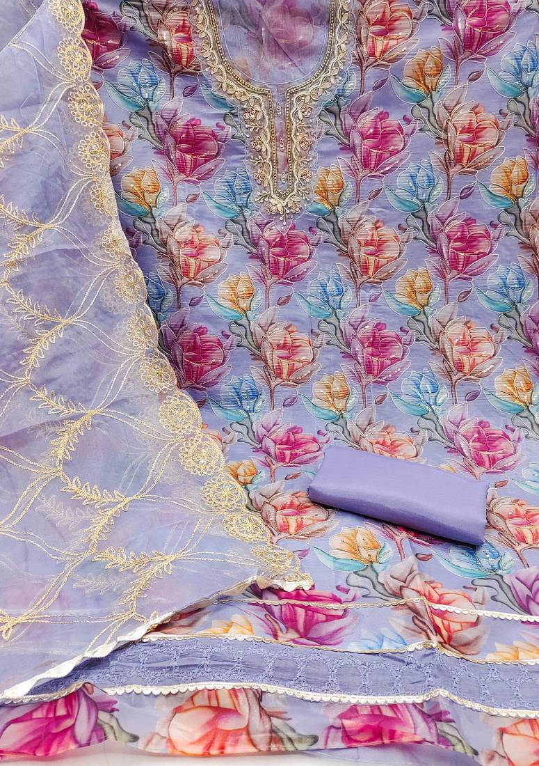 | Product Name | Lavender Organza Printed Unstitched Dress Material | |