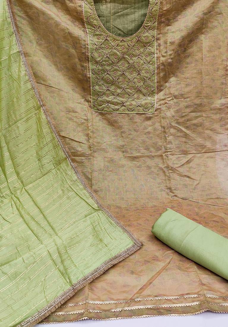 | • | Dupatta | : | Color- Light Olive / Fabric- Chiffon |