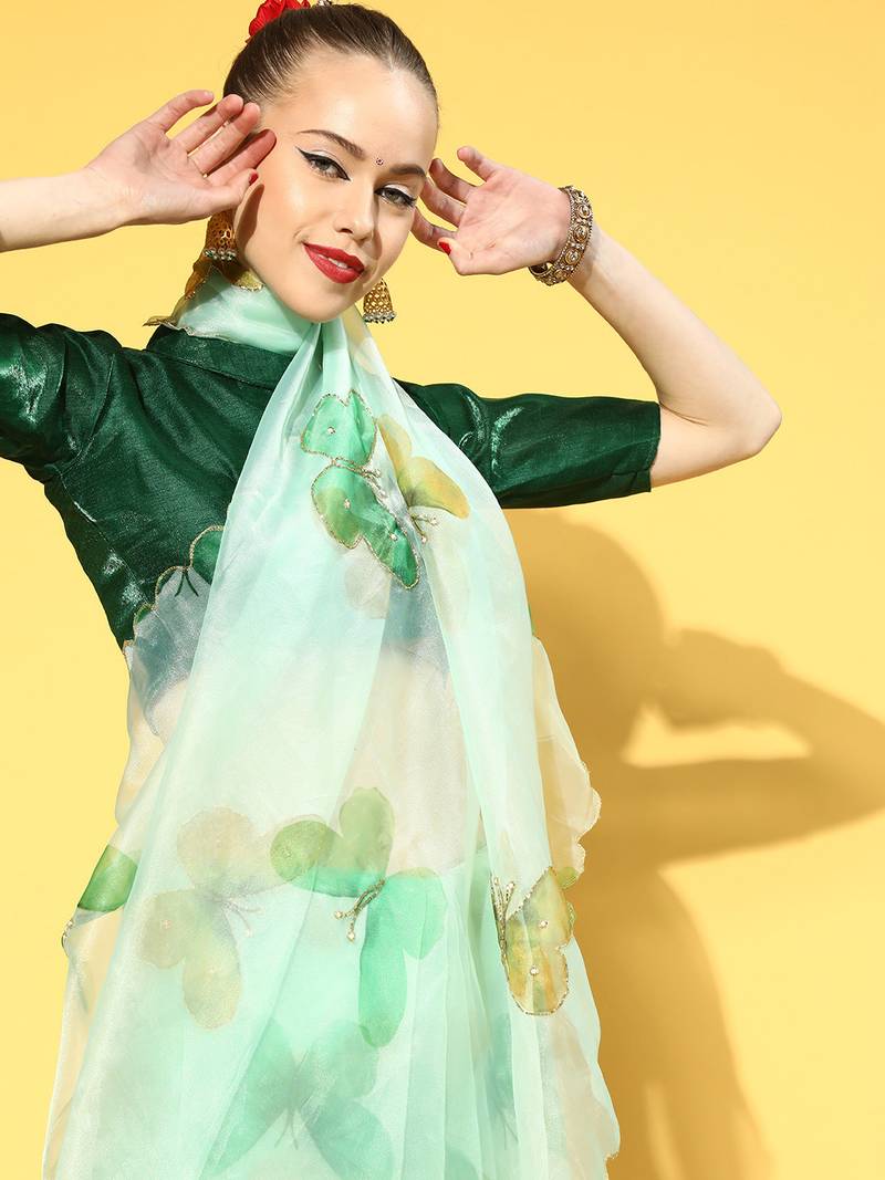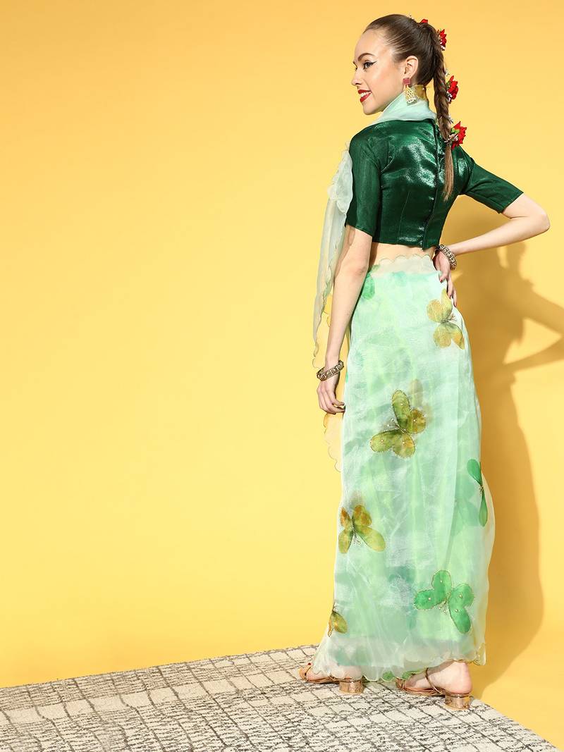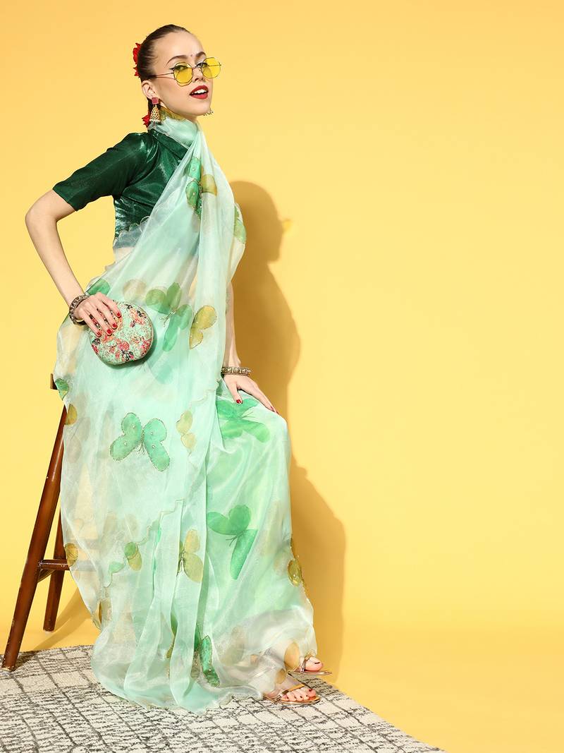 | Product Name | Light Parrot Green Printed Organza Saree With Blouse | |