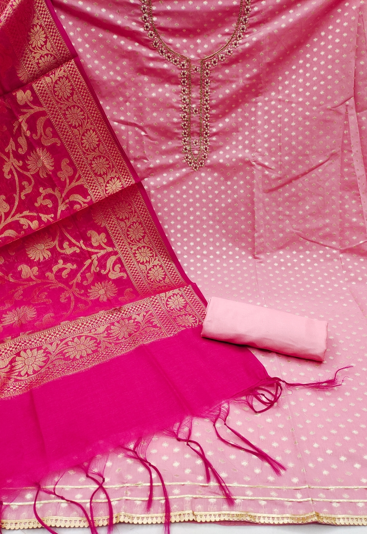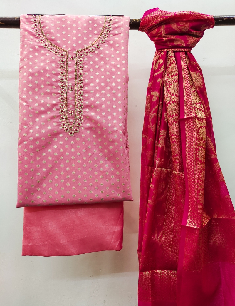 | • | Kameez | : | Color- Pink / Fabric- Banarasi |