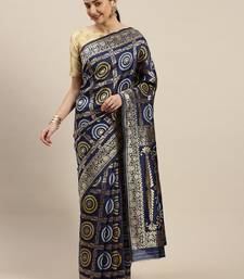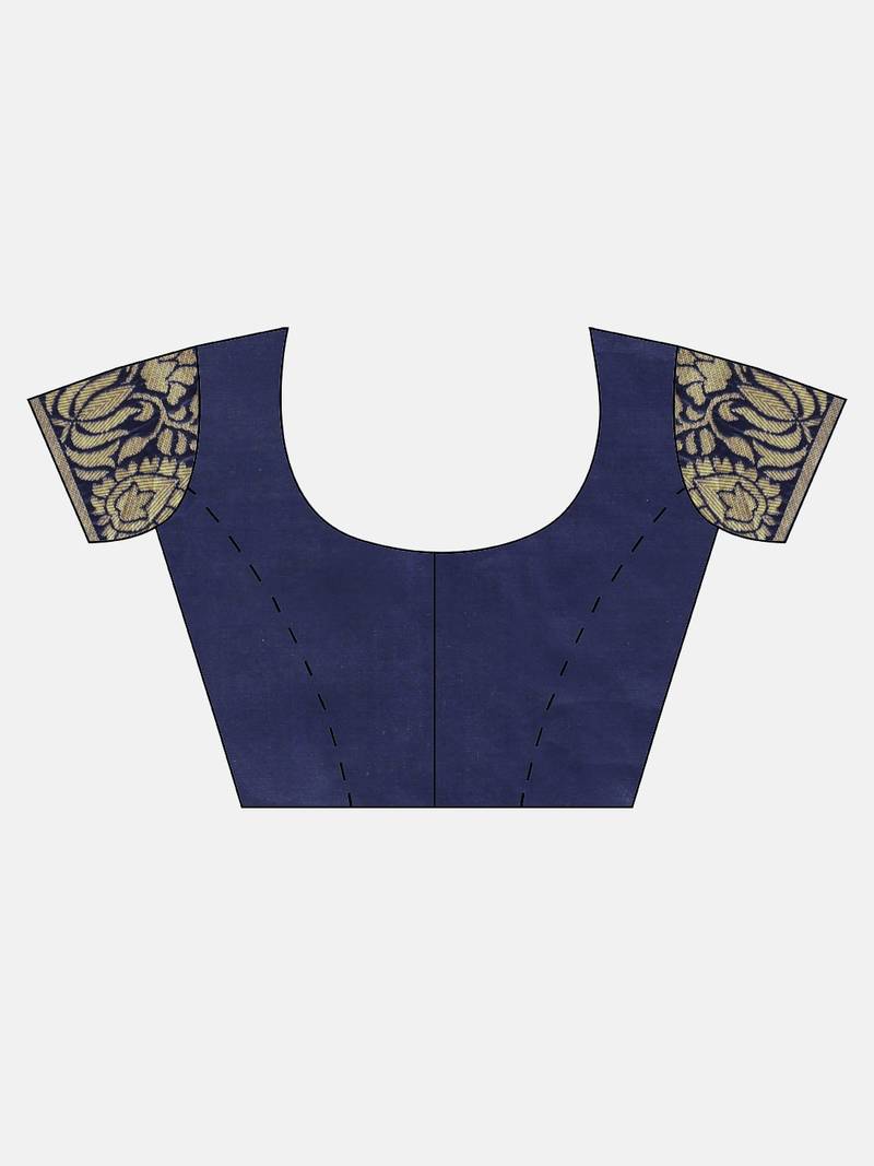 Kimisha women's navy blue silk woven design saree with unstitched blouse
