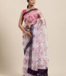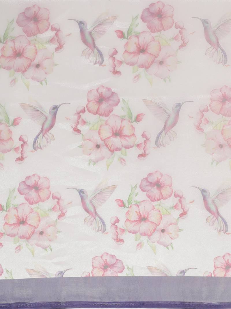 Kimisha women's off white organza digital printed saree with art silk blouse piece