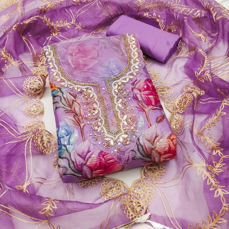 | Product Description | Beautifully Designed & Latest In Trends Women's Ethnic Organza With Printed Un Stitched Straight Suit. It Is Available In Free Size And Can Be Stitched To Suit Your Measurements. It Is Alterable Up To Chest Size Of 46, Comes With Organza Fancy Dupatta And Plain Santoon Un Stitched Bottom. This Dress Would Add Elegance To Your Look. Wear It At Any Occasion By Pairing It With Matching Ethnic Jewelary Like Ethnic Jumkas And Ethnic Footwear Like Mojaris And Juties To Get Complete Ethnic As Well As Fab Festive Look & Get Complimented For Your Impressive Choice. |