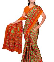 Orange printed art silk saree with blouse