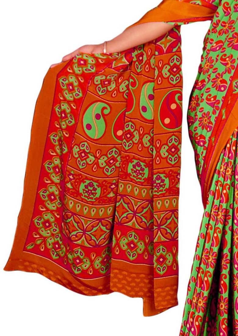 | Product Name | Orange Printed Art Silk Saree With Blouse | |