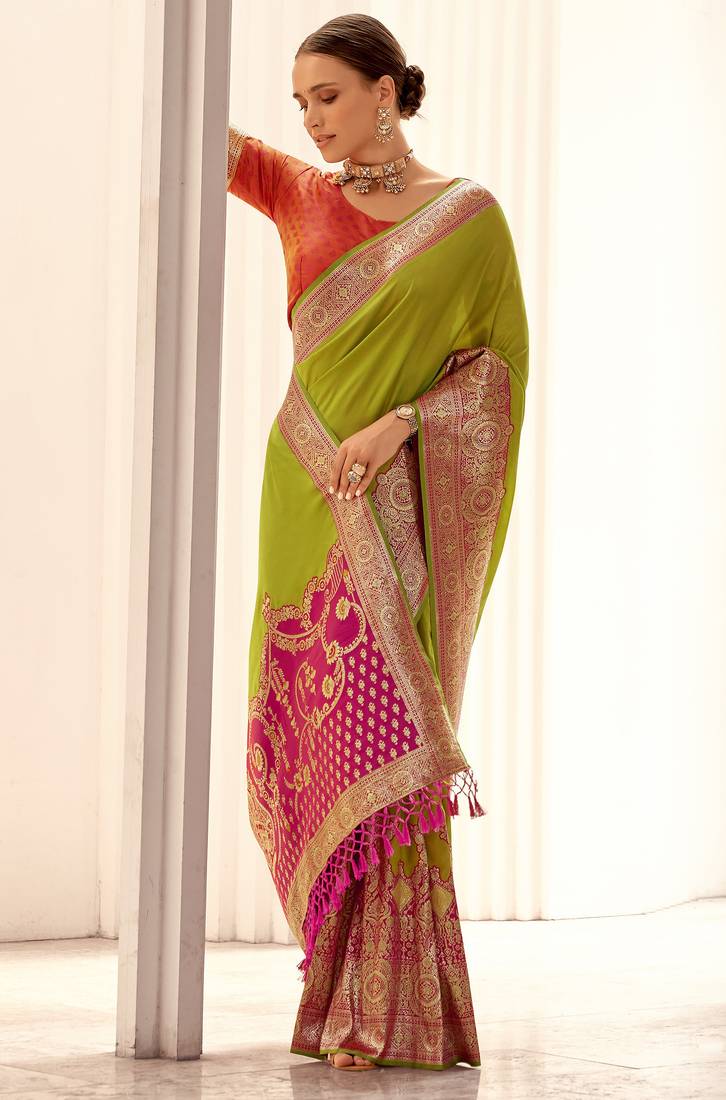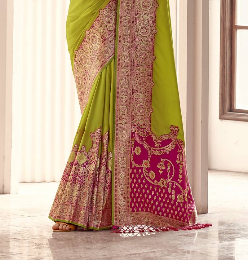 | Product Name | Parrot Green Soft Silk Blend Woven Saree With Unstitched Blouse Piece | |