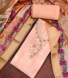 Peach rayon cotton embellished unstitched dress material