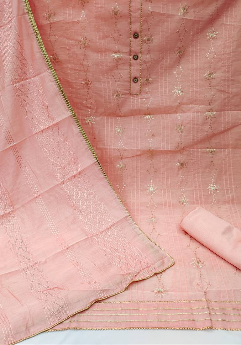Peach sequins chanderi salwar unstitched