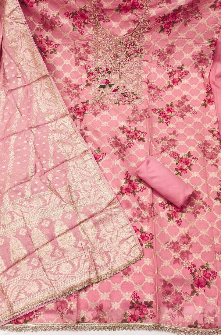 Pink banarasi modal digital print unstitched dress material