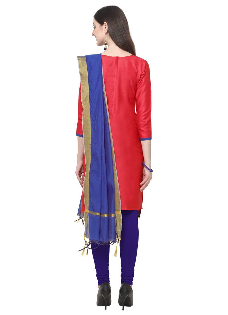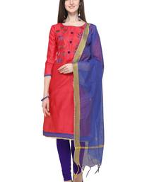 Pink embroidered cotton salwar suit with chanderi cotton dupatta unstitched