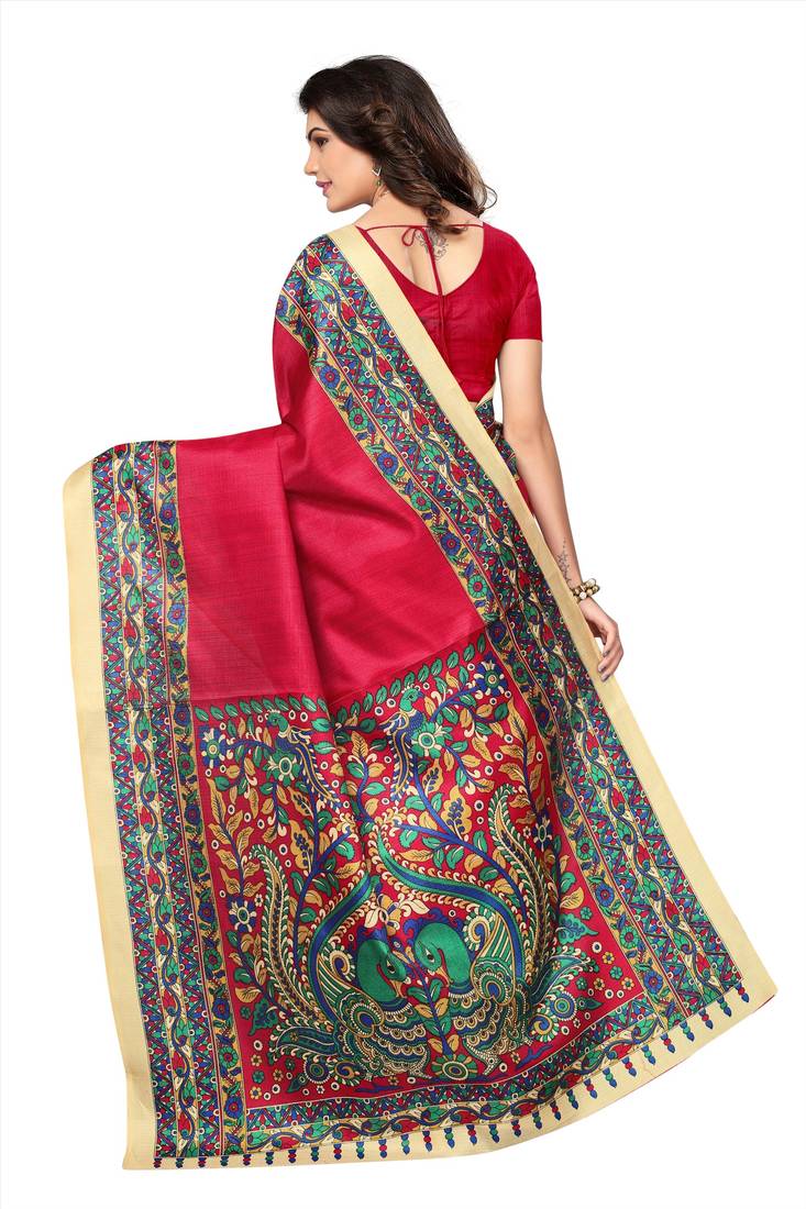 | Product Name | Pink Printed Art Silk Saree With Blouse | |