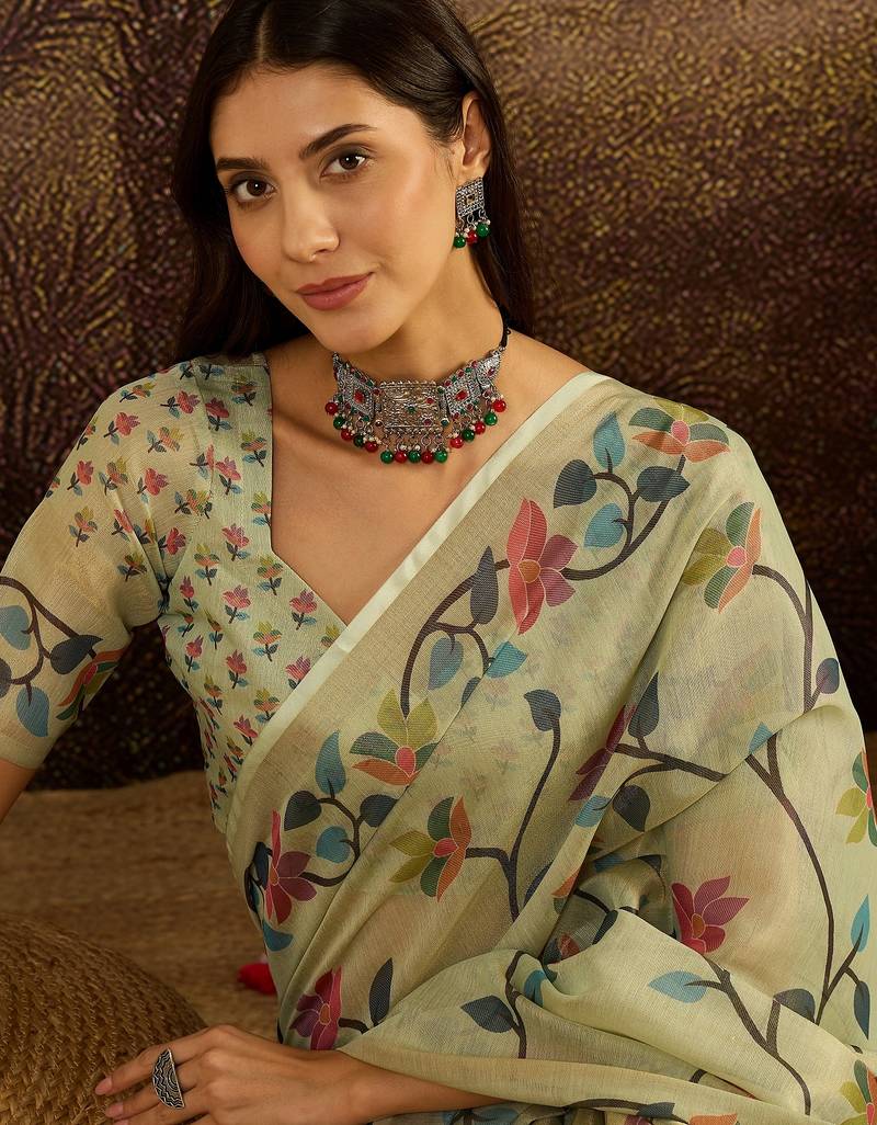 | Product Name | Pista Silk Cotton Printed Saree With Unstitched Blouse Piece | |