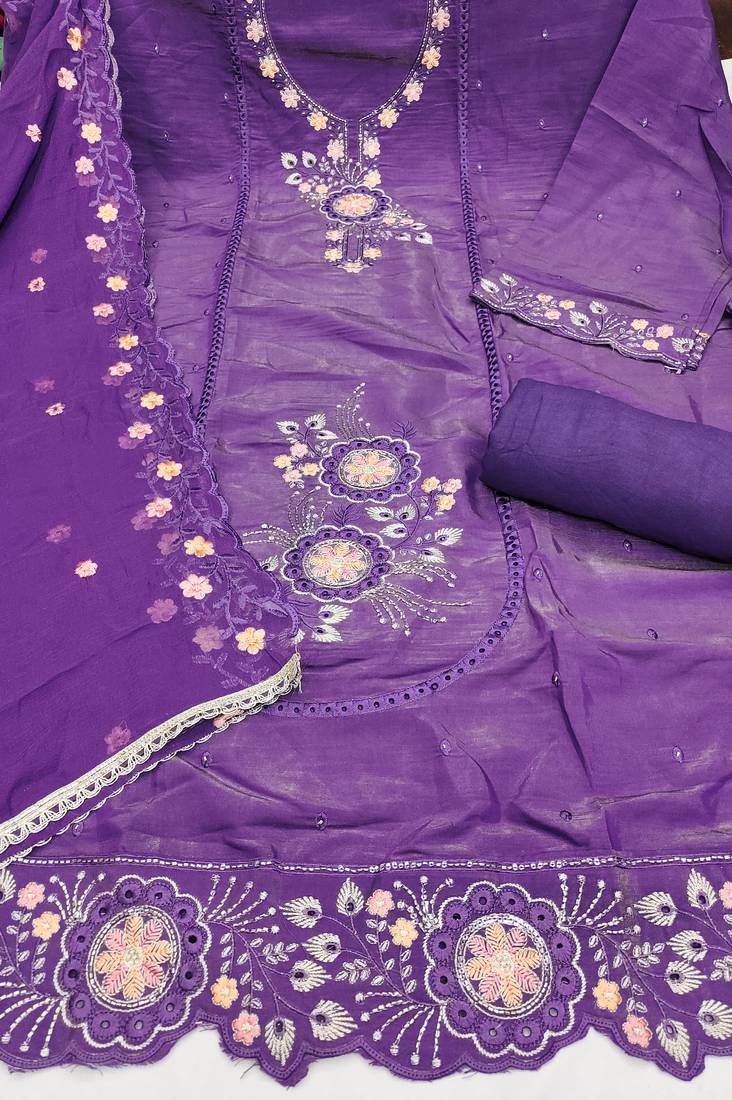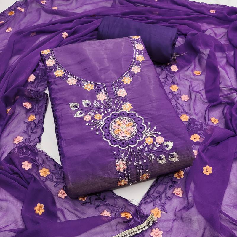 | Product Name | Purple Viscose Embroidered Unstitched Dress Material | |