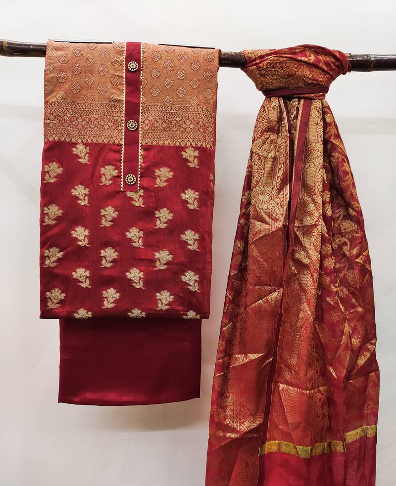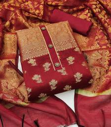 Red floral print banarasi salwar unstitched