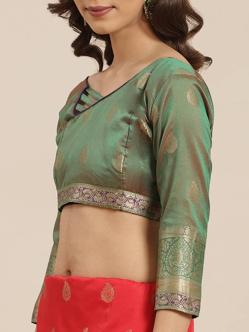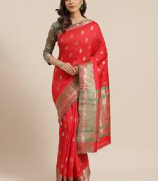 Red woven banarasi saree with blouse