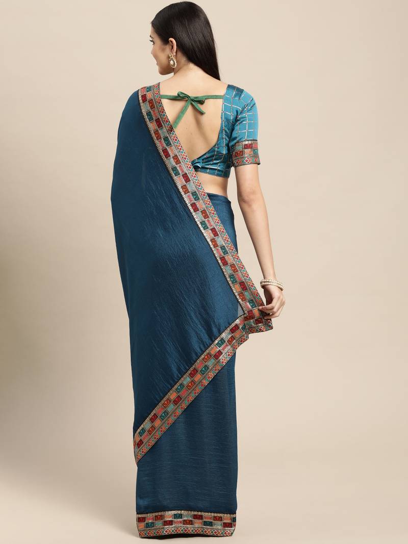 | Product Name | Teal Plain Poly Silk Saree With Blouse | |