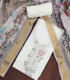 White cotton silk embroidered unstitched dress material