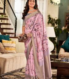Women's baby pink handloom silk saree with unstitched silk blouse piece