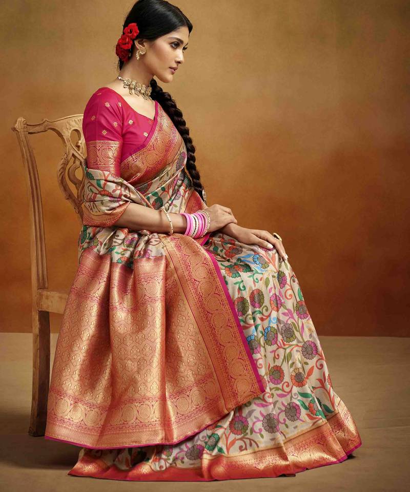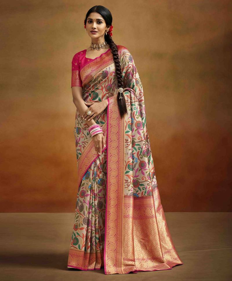 Product Name | Women's Beige Tissue Silk Kalamkari Saree With Unstitched Silk Blouse Piece | |