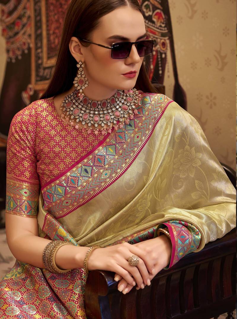 Product Description | Beautifully Designed & Latest In Trends Women's Ethnic Saree Which Is Made From Tissue Silk Has Fancy Border & Available In Set Of Attractive Colors. This Saree Comes With Contrast Tissue Silk Blouse Piece. It Can Be Worn To Festive Occasions Or Party, Marriage Occasion Wherever You Want To Flaunt Your Style With This Outfit. This Saree Would Add Elegance To Your Look. |