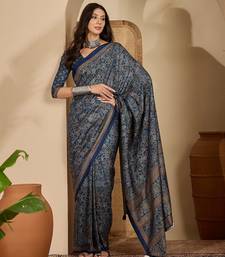 Women's blue silk cotton foil print saree with unstitched blouse piece