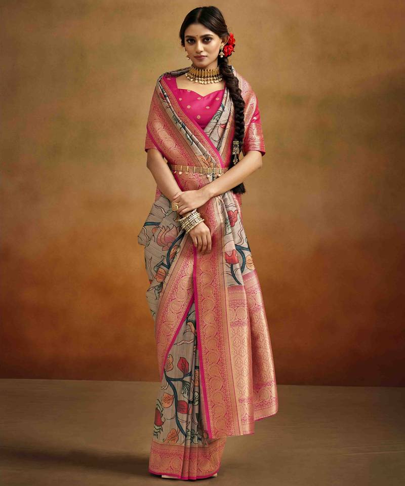 Product Name | Women's Brown Tissue Silk Kalamkari Saree With Unstitched Silk Blouse Piece | |