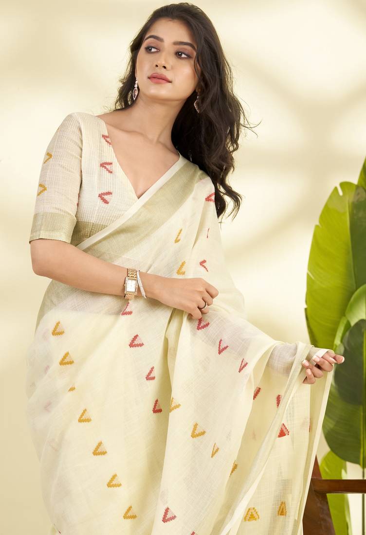 Product Name | Women's Cream Linen Silk Woven Saree With Unstitched Silk Blouse Piece | |