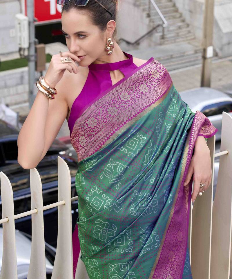 Product Name | Women's Dark Green Soft Silk Bandhani Saree With Unstitched Silk Blouse Piece | |