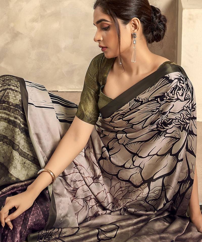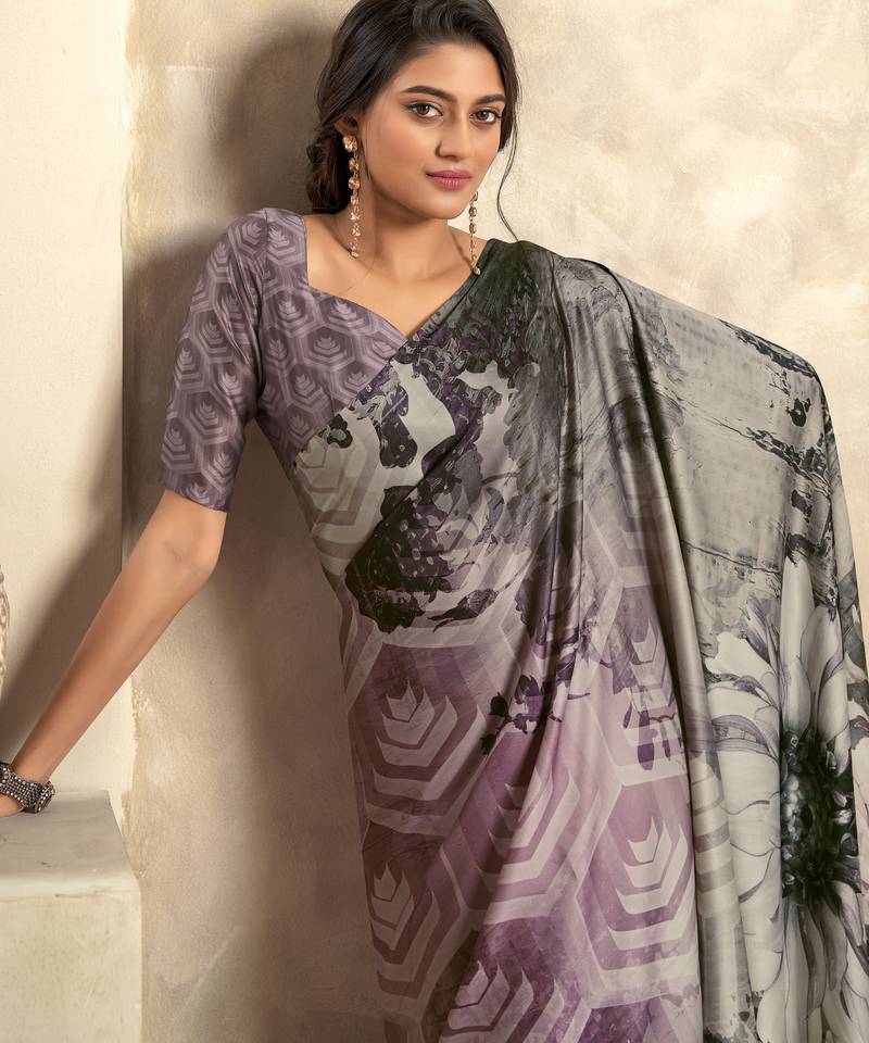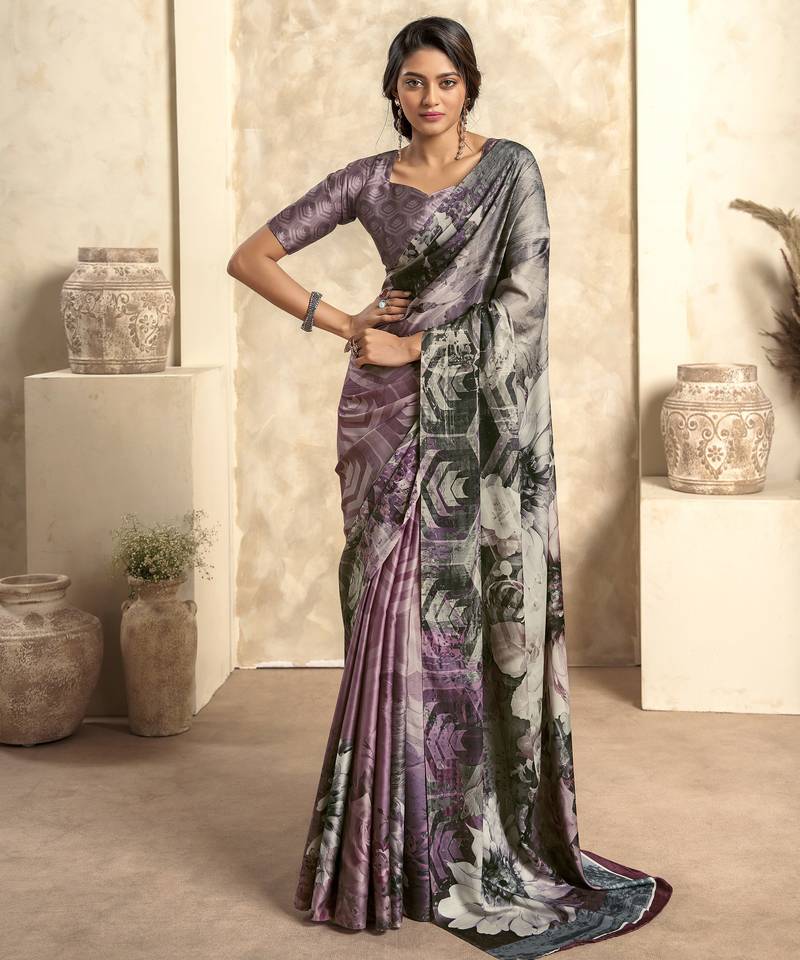 Product Name | Women's Lavender Satin Crepe Printed Saree With Unstitched Silk Blouse Piece | |