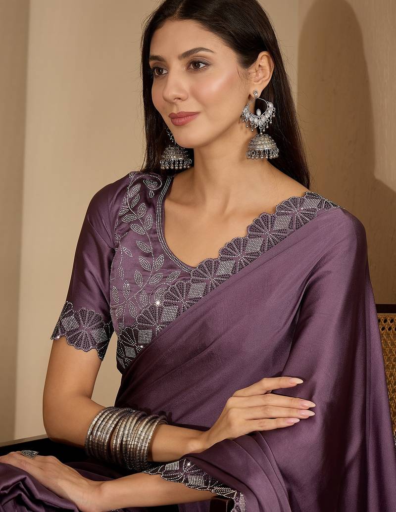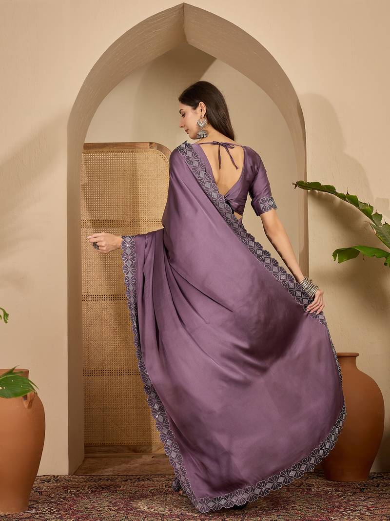 | Product Name | Women's Lavender Satin Embellished Saree With Unstitched Blouse Piece | |