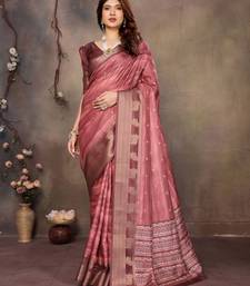 Women's maroon dola silk blend digital print saree with unstitched blouse piece