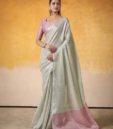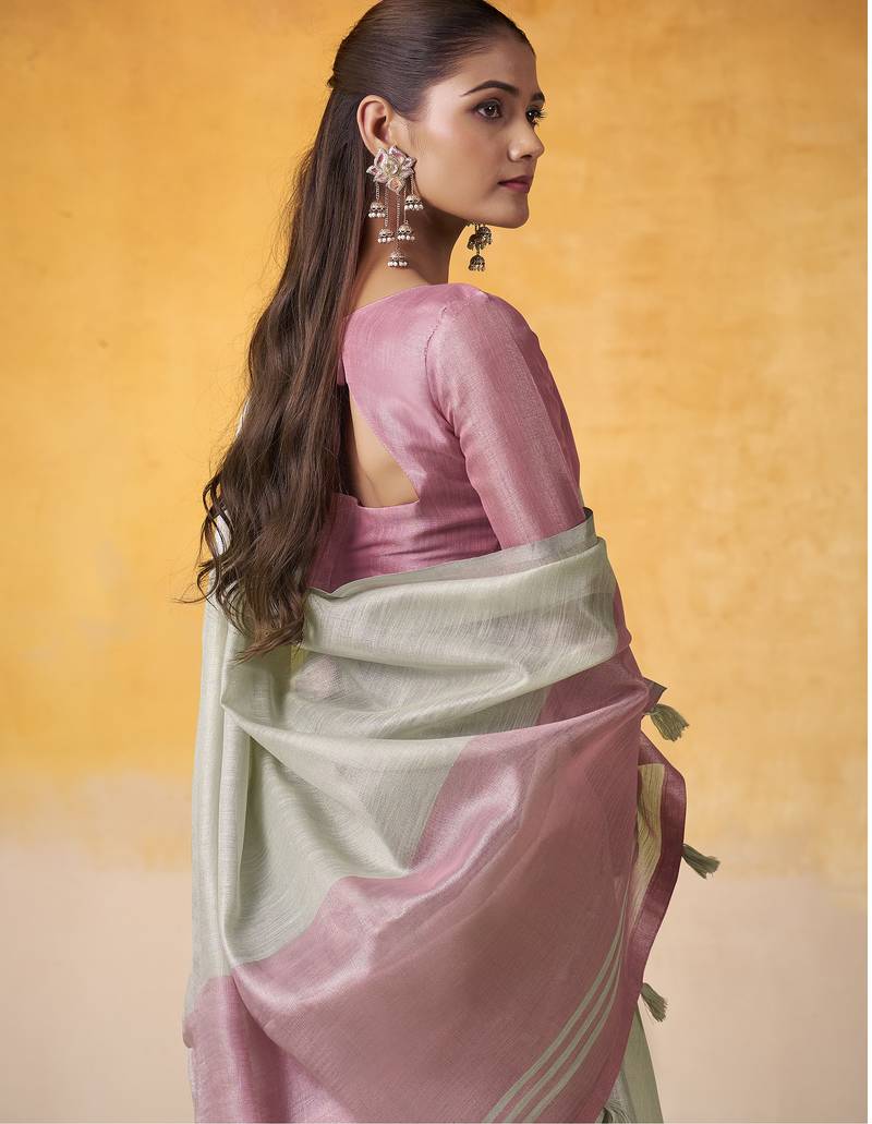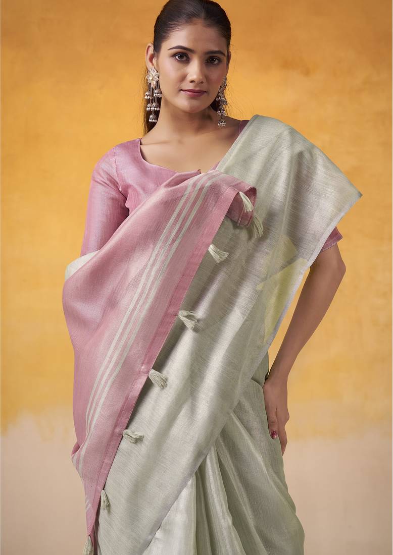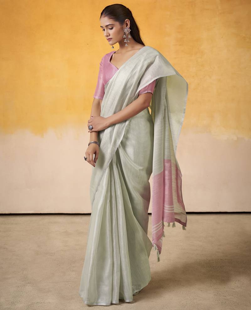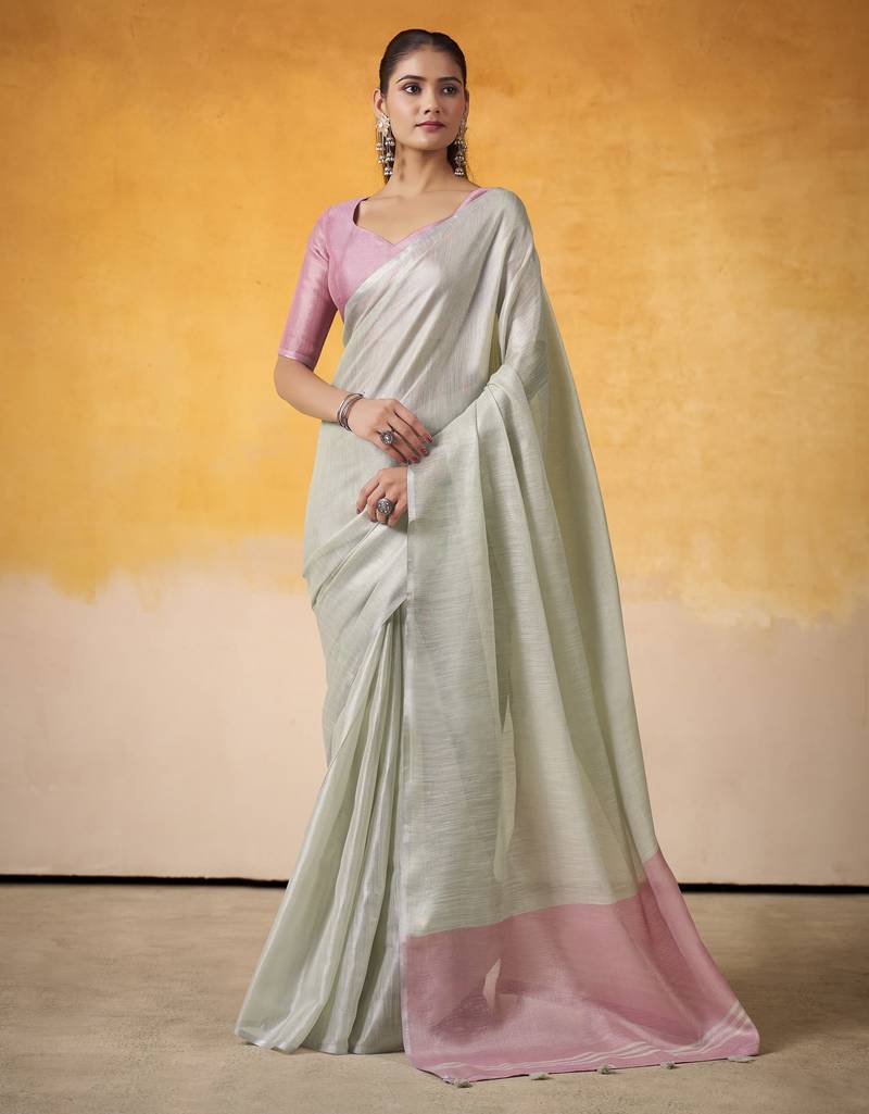 Women's mint tissue silk solid saree with unstitched silk blouse piece