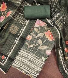 Women's olive cotton silk embroidered unstitched dress material