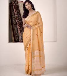 Women's orange linen silk woven saree with unstitched silk blouse piece