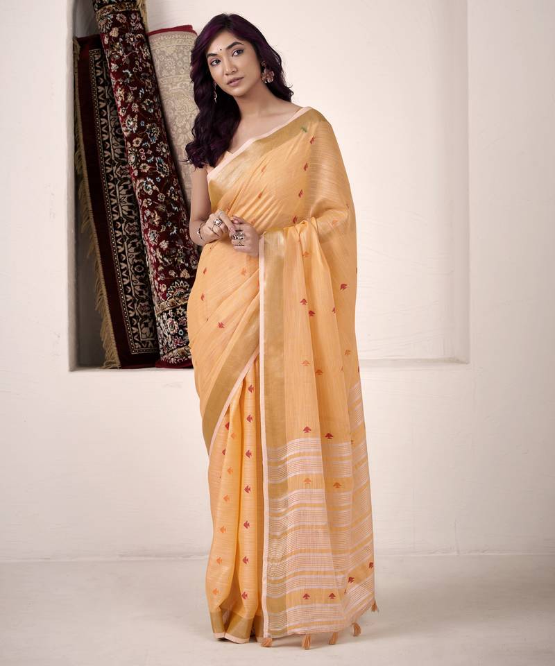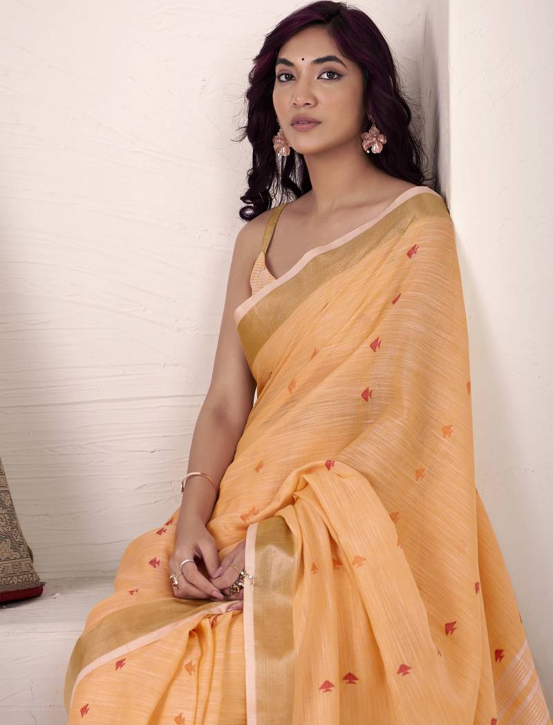 Product Name | Women's Orange Linen Silk Woven Saree With Unstitched Silk Blouse Piece | |