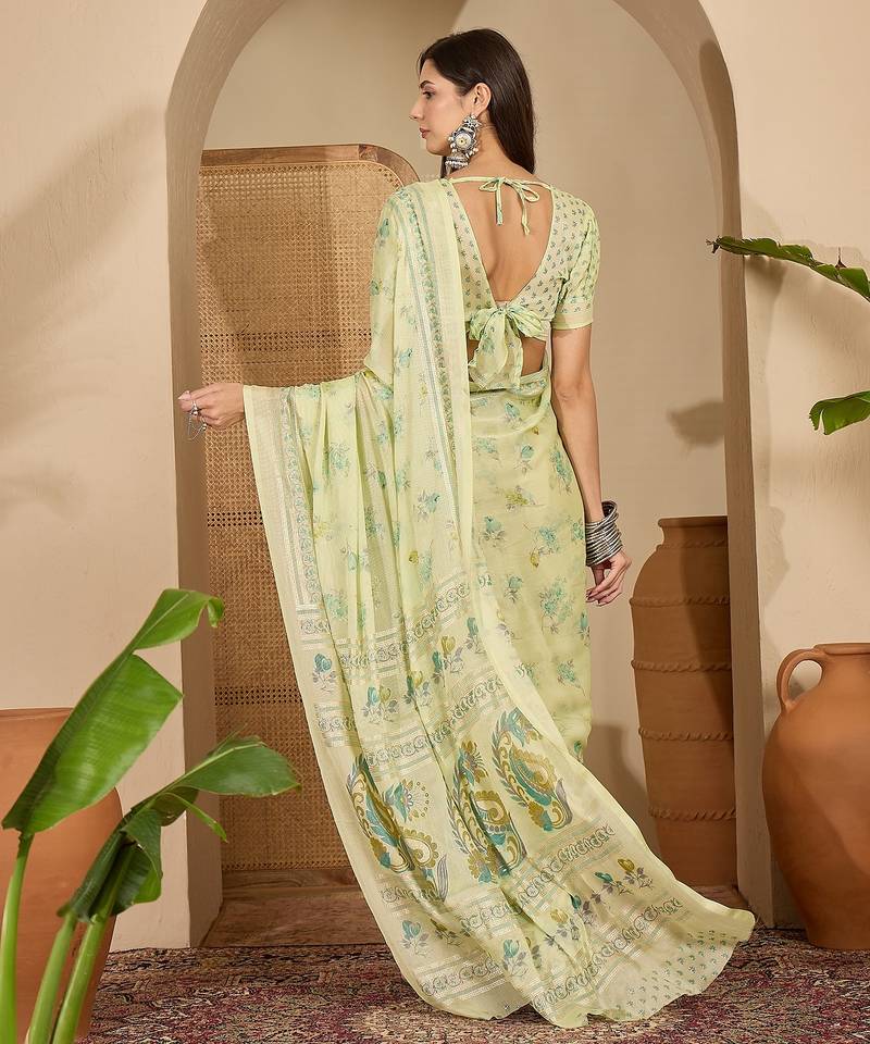 | Product Name | Women's Pista Chiffon Foil Print Saree With Unstitched Blouse Piece | |
