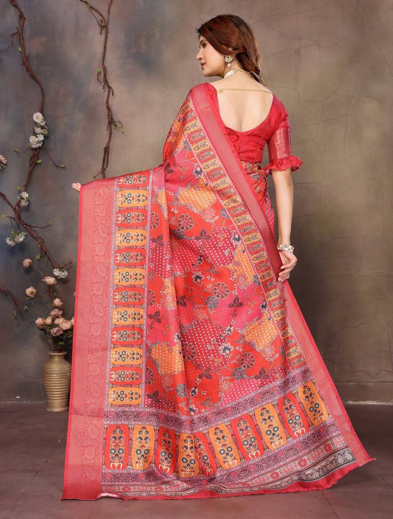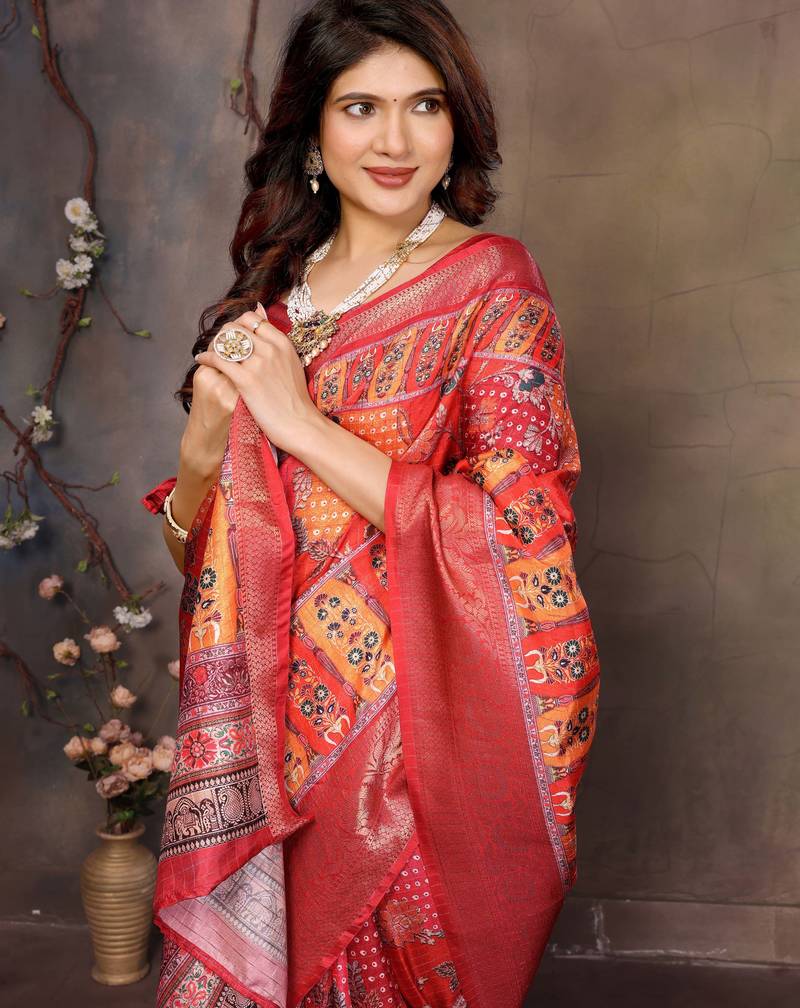 | Product Name | Women's Red Dola Silk Blend Digital Print Saree With Unstitched Blouse Piece | |