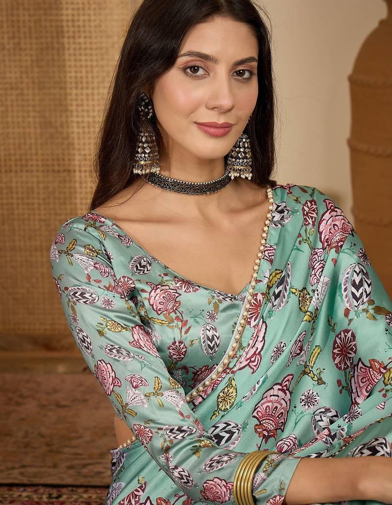 | Product Name | Women's Sea Green Satin Printed Saree With Unstitched Blouse Piece | |