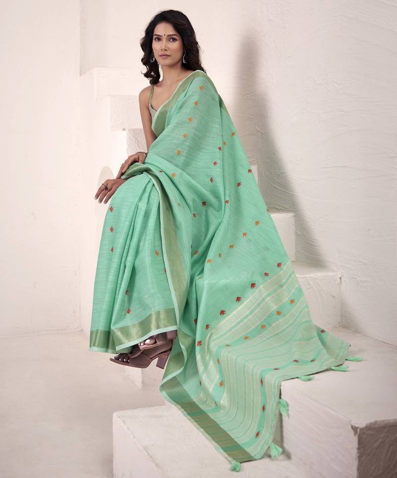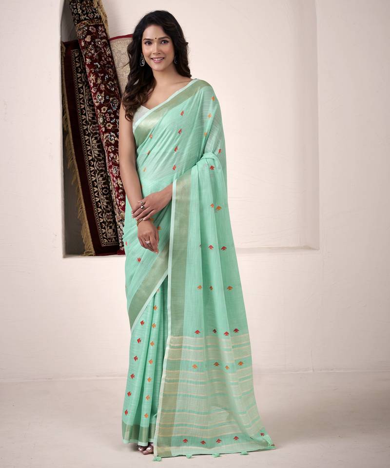 Product Name | Women's Turquoise Linen Silk Woven Saree With Unstitched Silk Blouse Piece | |