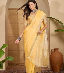 | Product Name | Women's Yellow Silk Blend Chiffon Swaroski Work Saree With Unstitched Blouse Piece | |