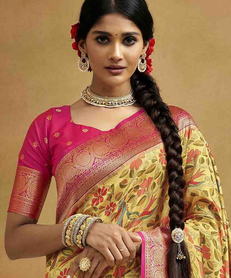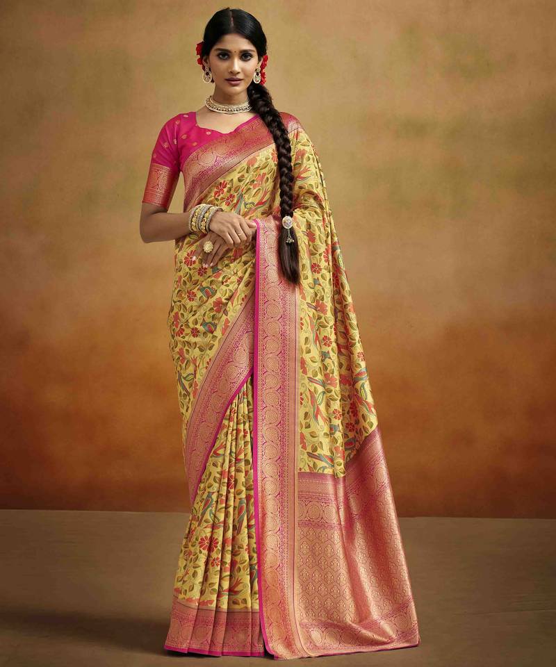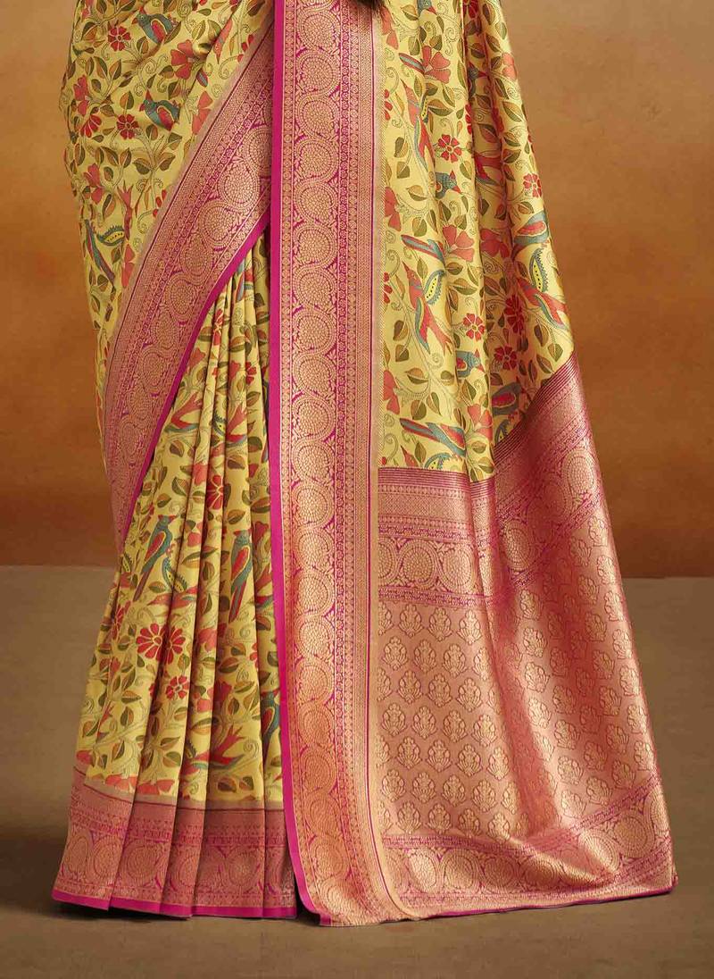 Product Name | Women's Yellow Tissue Silk Kalamkari Saree With Unstitched Silk Blouse Piece | |